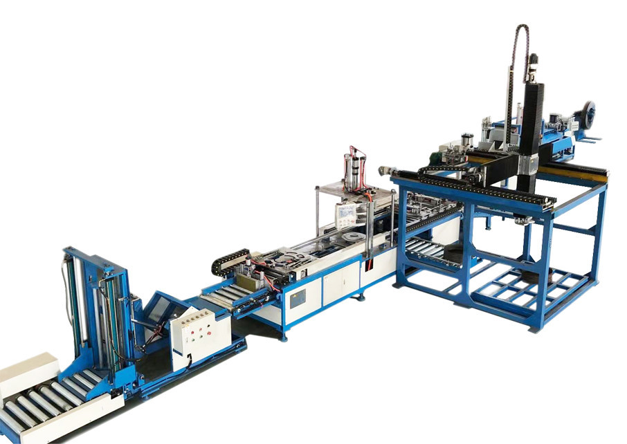 適用于對(duì)裙板進(jìn)行自動(dòng)送料、自動(dòng)剪切、焊接、成型、裙板與端板鑲嵌、自動(dòng)碼垛。
