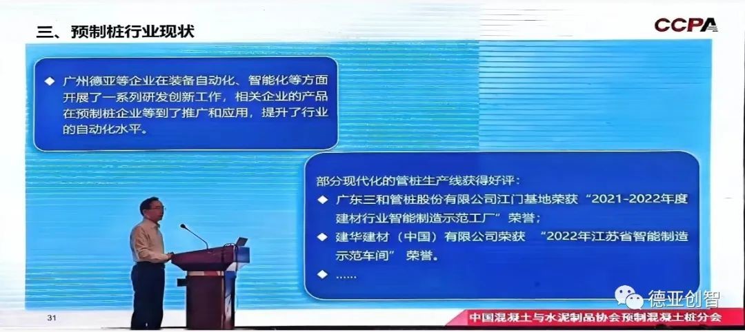 本次會(huì)議由中國混凝土與水泥制品協(xié)會(huì)預(yù)制混凝土樁分會(huì)主辦,蘇州混凝土水泥制品研究院有限公司、廣東三和管樁股份有限公司承辦,江蘇海恒建材機(jī)械有限公司、廣州德亞機(jī)械制造有限公司(以下簡稱德亞創(chuàng)智)協(xié)辦。