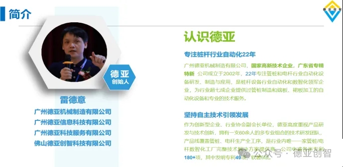 廣州德亞機械制造有限公司董事長雷德意受邀以《新能源管樁智能化與數(shù)字化工廠》為主題講座。分析管樁行業(yè)瓶頸與樁桿制造痛點,提出解決出路:從傳統(tǒng)模式向智能化&數(shù)字化升級,打造樁桿行業(yè)新質(zhì)生產(chǎn)力!